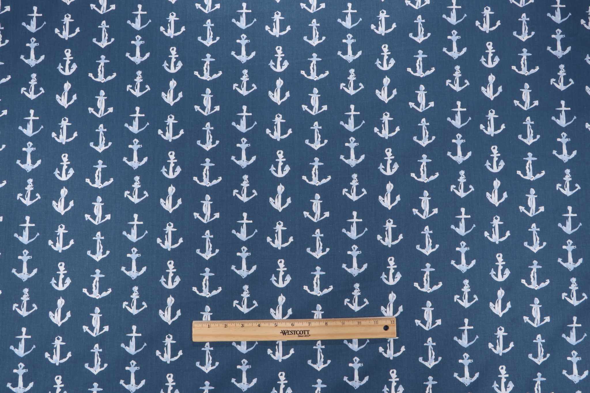 14.88 Yards Premier Prints Anchor Printed Cotton Twill Drapery Fabric in Blue Details