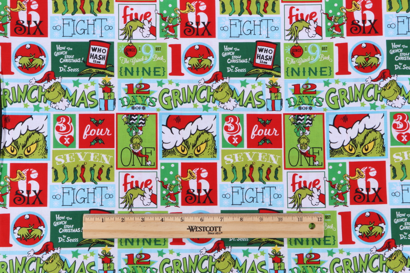 5.63 Yards Robert Kaufman How The Grinch Stole Christmas Collection ADE-20275-223 Printed Cotton Craft Fabric in Holiday Details