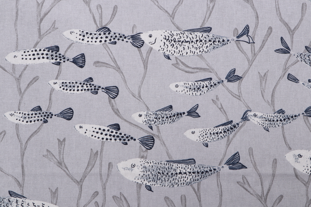 0.75 Yards Stof France Merlu Printed Drapery Fabric in Gris Details