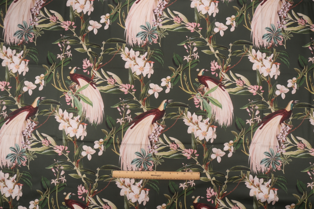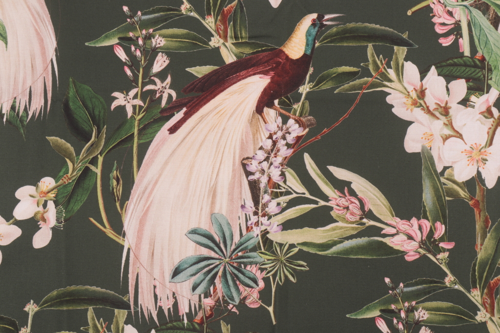 Stof France Paradisier Printed Cotton Drapery Fabric in Kaki is a remnant, which is sold as a whole piece.