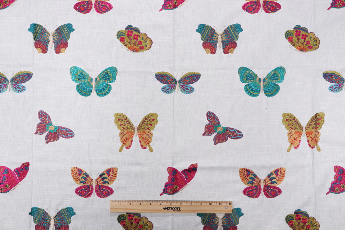 TFA Summer Field Printed Embroidered Cotton Drapery Fabric in Carnival is a remnant, which is sold as a whole piece.