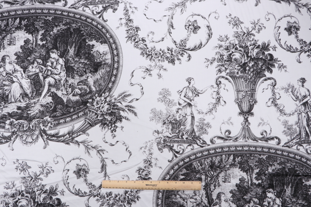 6.25 Yards Thibaut Biltmore F97315 Printed Cotton Drapery Fabric in Black on White Details