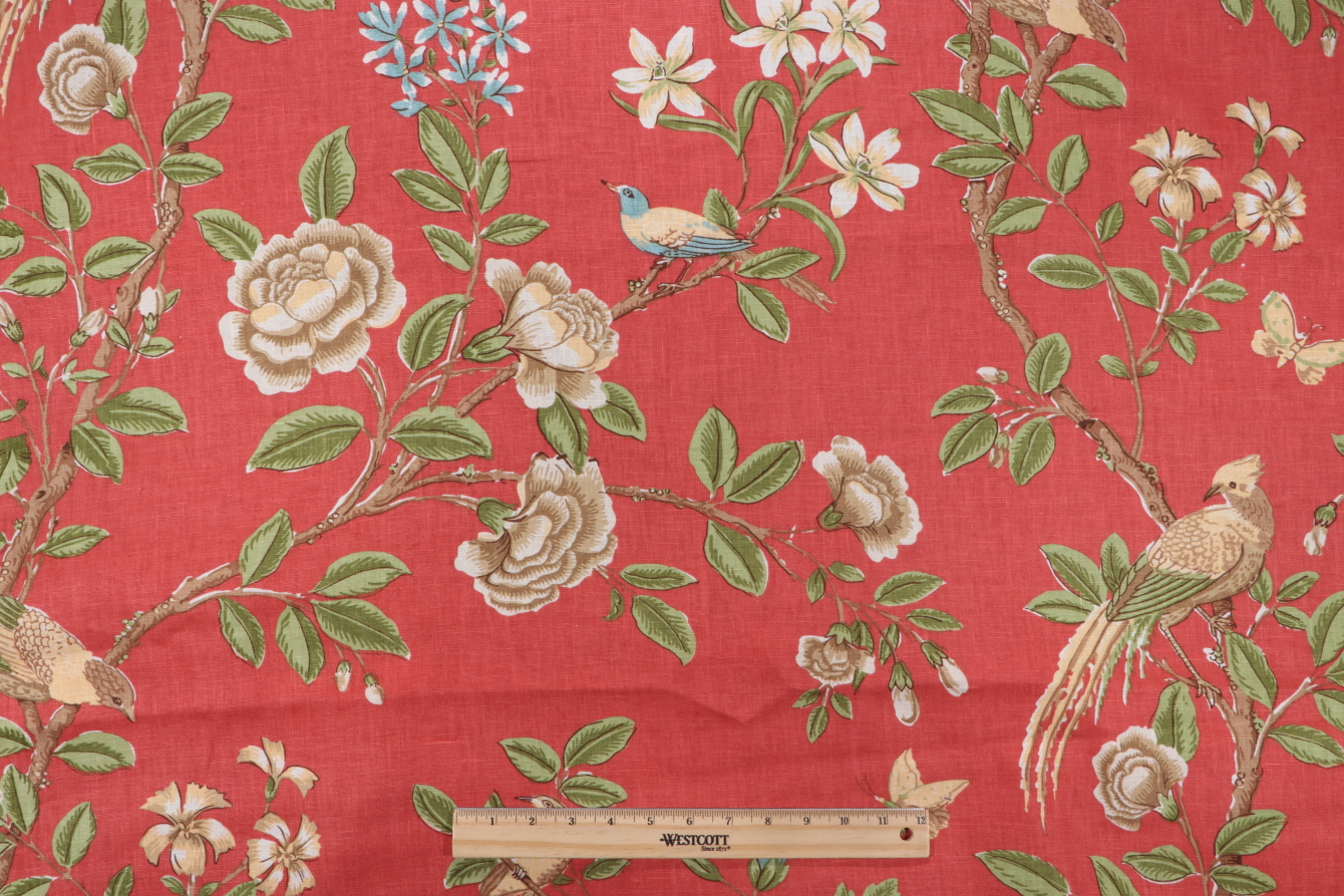 2 Yards Thibaut Newman F94706 Printed Linen Drapery Fabric in Pink Details