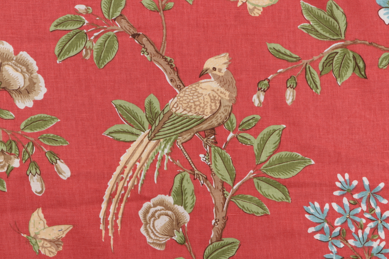 Thibaut Newman F94706 Printed Linen Drapery Fabric in Pink is a remnant. Fabric remnants refer to leftover pieces of fabric from production runs at manufacturing sites or pieces that remain from by the yard stock. The lengths of these remnants can vary from a few inches to several yards and are typically sold at a reduced price, since they represent remaining inventory.