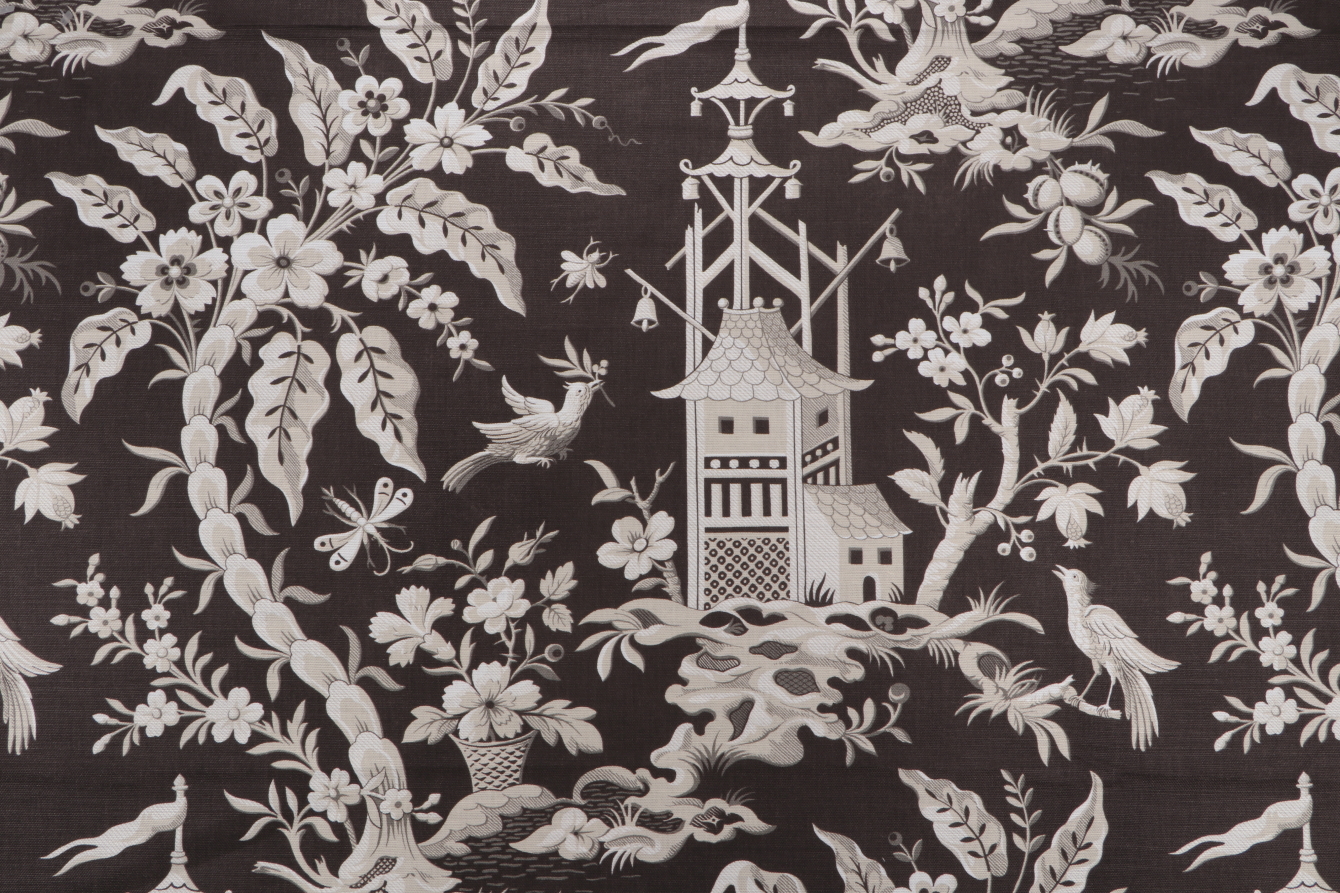 1 Yards Thibaut Pagoda Garden F914207 Printed Linen Blend Drapery Fabric in Charcoal Details