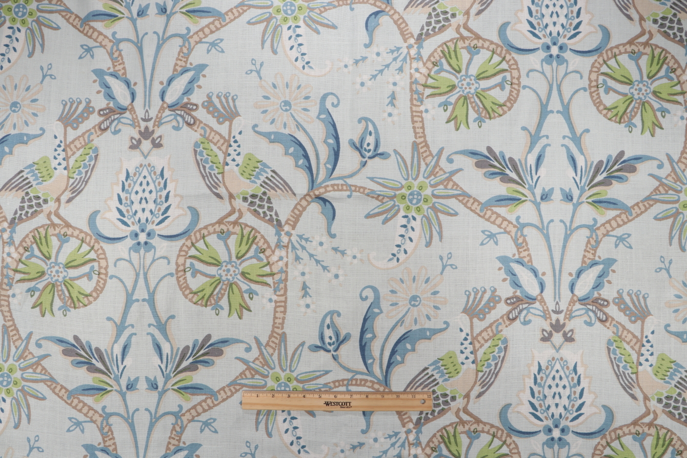 3.25 Yards Thibaut Peacock Garden F924360 Printed Linen Drapery Fabric in Aqua Details