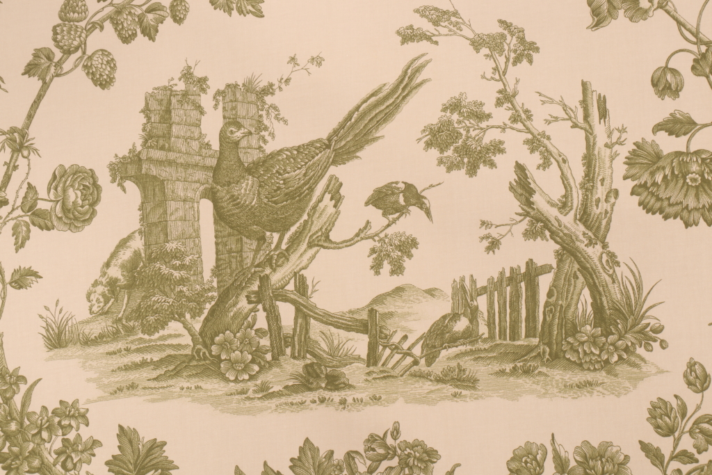 Thibaut Pheasant Toile F96343 Printed Cotton Drapery Fabric in Green. This printed fabric is perfect for window treatments, decorative pillows, handbags, light duty upholstery applications and almost any craft project. This fabric has a soft workable feel yet is stable and durable.