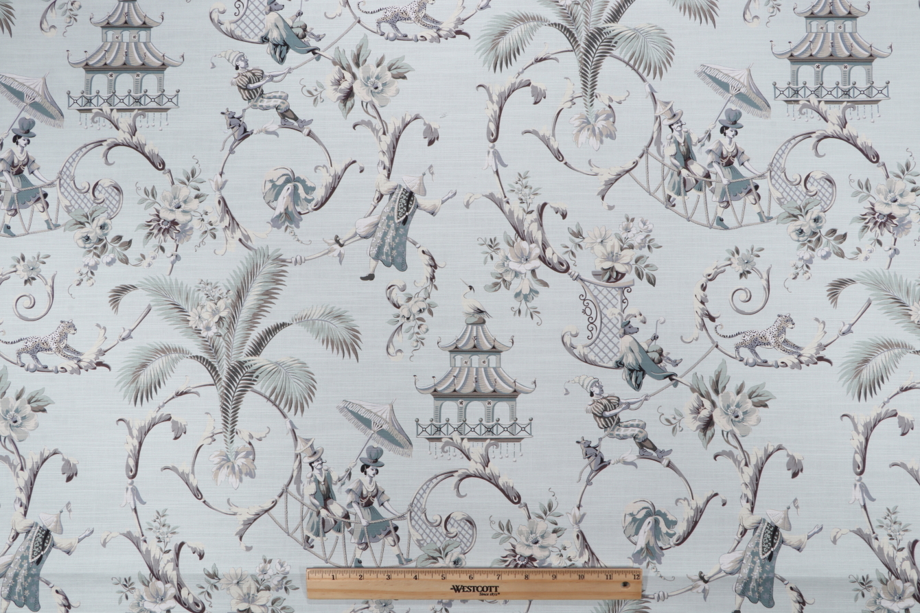 1.75 Yards Waverly Mandarin Prose Printed Cotton Drapery Fabric in Moonstone Details