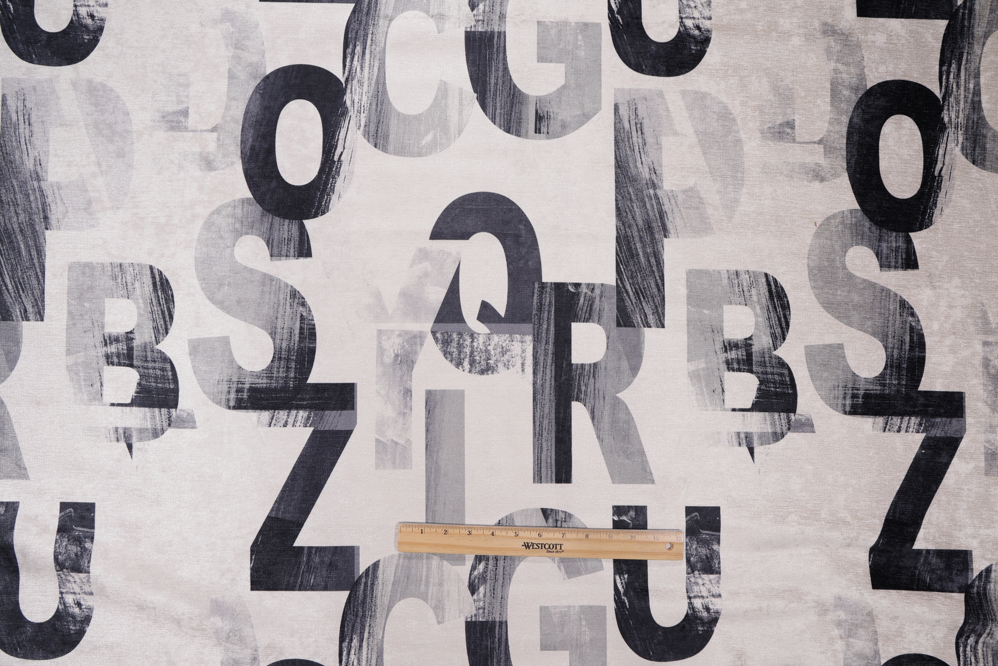 Alphabet City Printed Chenille Upholstery Fabric in New York City is a remnant, which is sold as a whole piece.