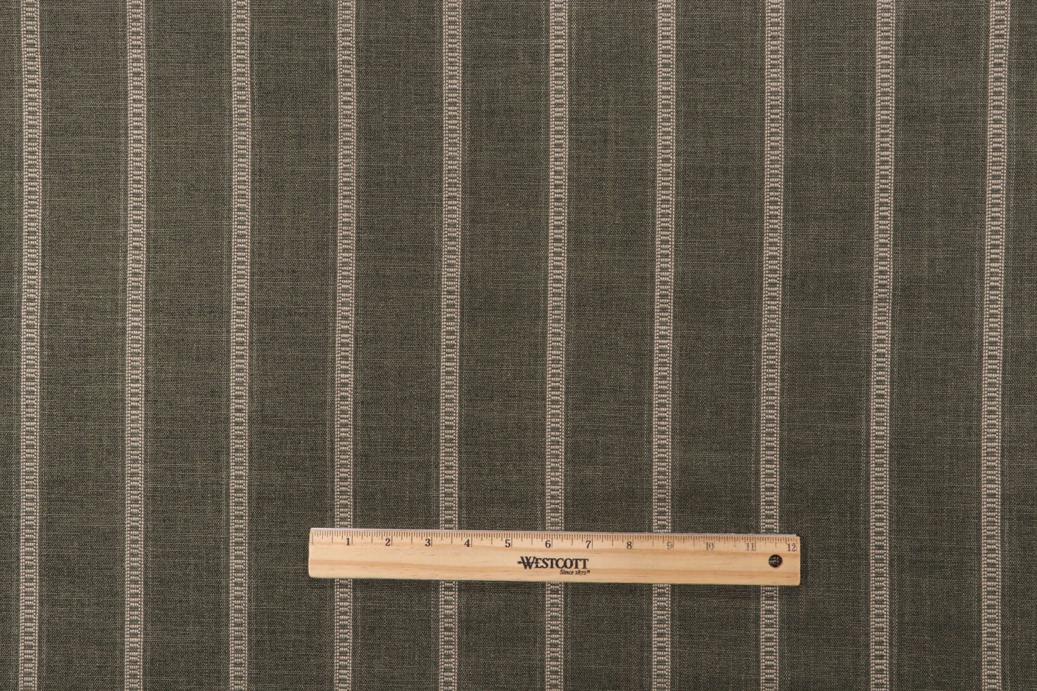 If you order a sample of PK Lifestyles Rancho Stripe Woven Chenille Upholstery Fabric in Olive the size of the swatch you receive will be approximately 4" x 6". This is enough fabric to verify color and texture, but may not be large enough to capture an entire pattern.