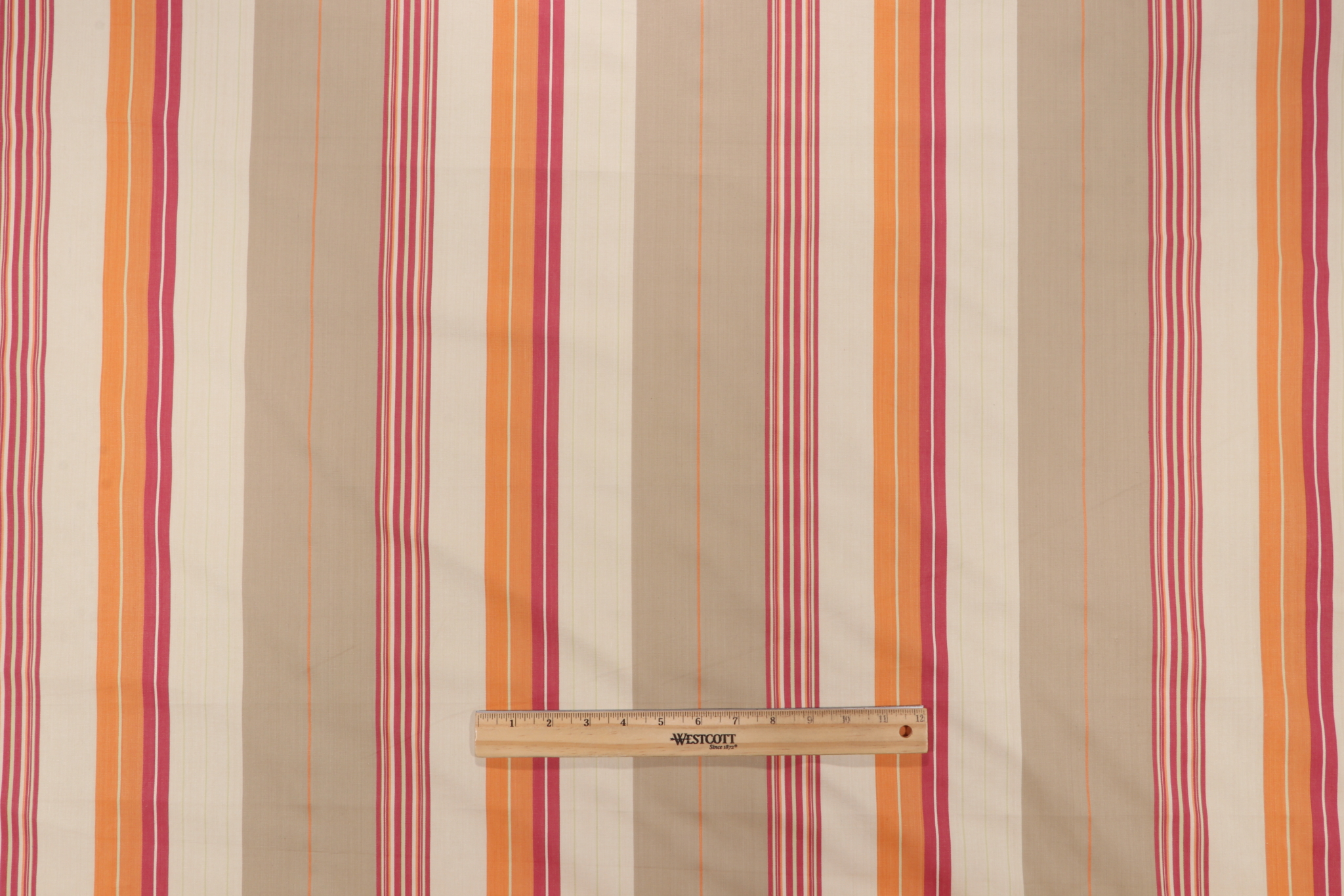 If you order 8.88 Yards Fonthill Saratoga Stripe Woven Decorator Fabric in Red Multi before 2pm Central with expedited shipping, your order will ship the same business day, otherwise please allow 1-2 business days.How soon will this fabric ship?