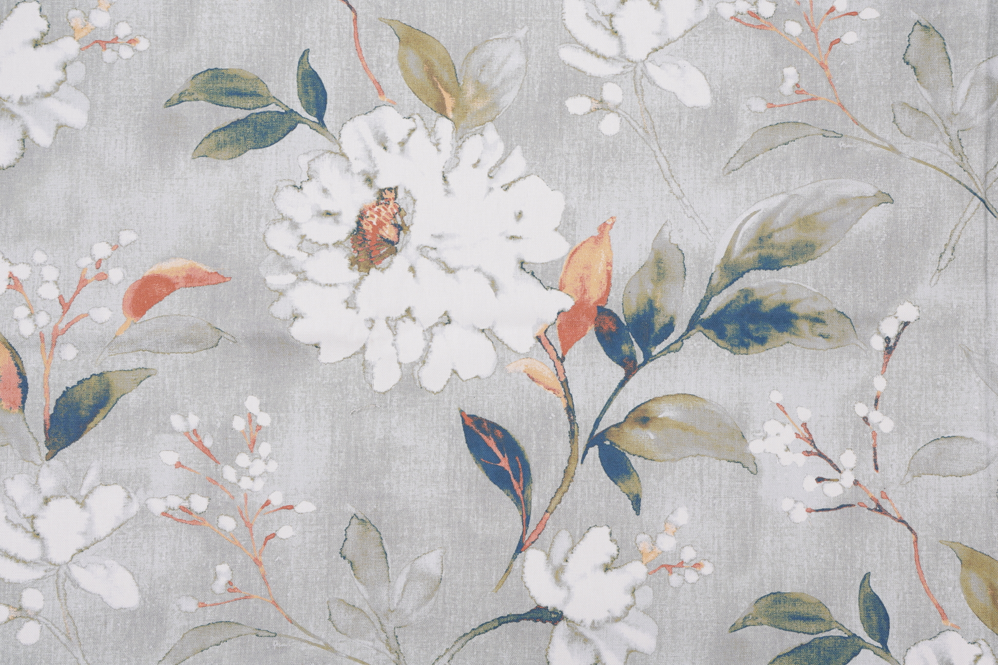 Swavelle/Mill Creek Rosella-Petro Printed Cotton Drapery Fabric in Fog Mist Details