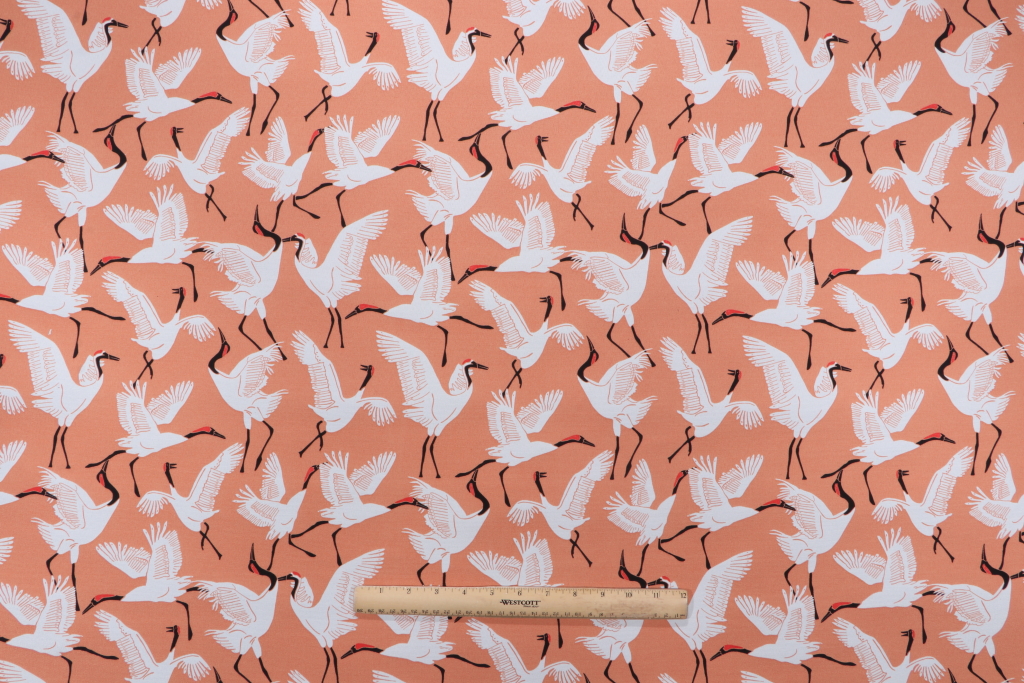 Novogratz Block Cranes Printed Polyester Outdoor Fabric in Coral Details