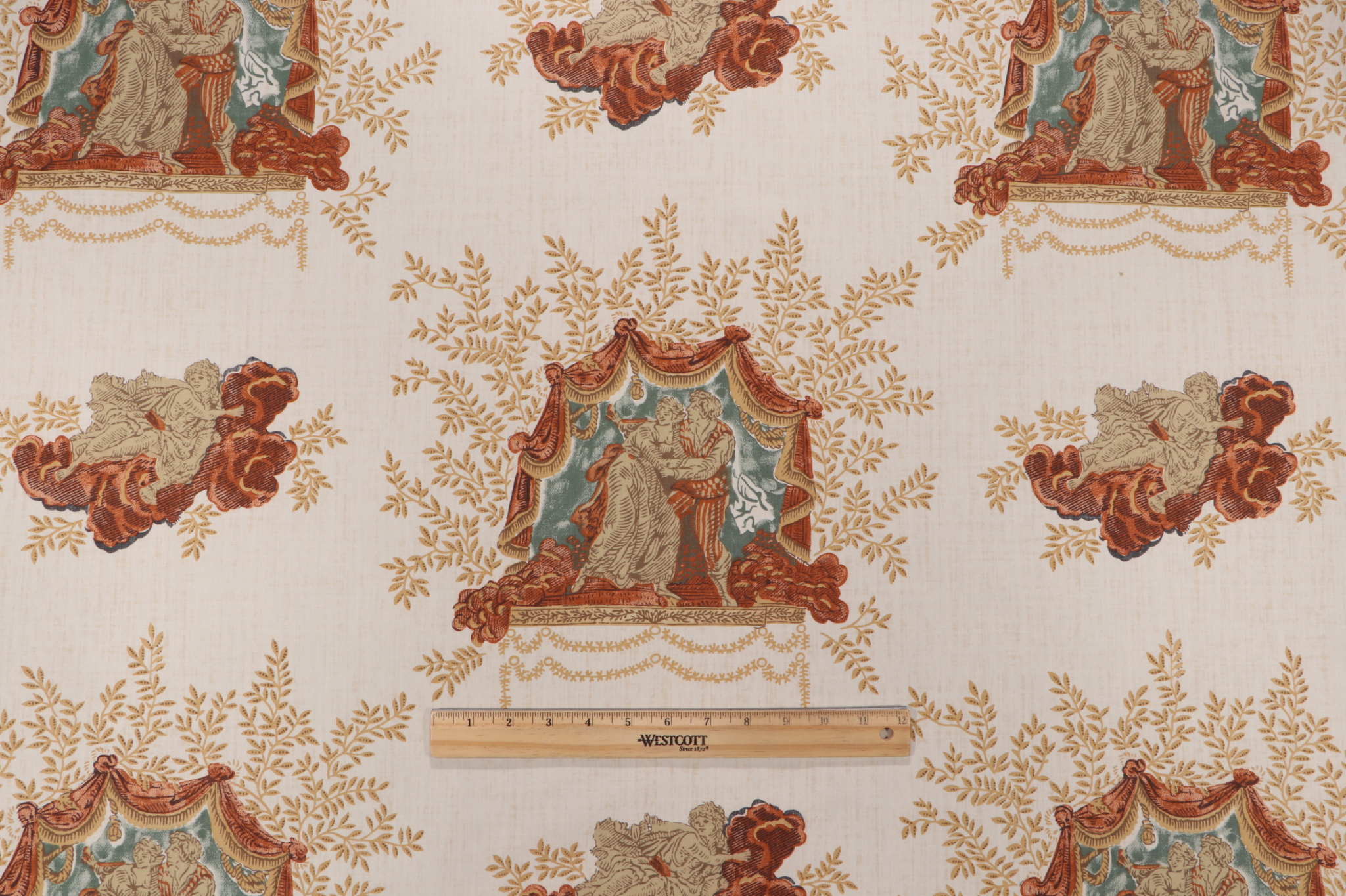 If you order a sample of Lorenzo Rubelli Ganimede Printed Drapery Fabric in Creme the size of the swatch you receive will be approximately 4" x 6". This is enough fabric to verify color and texture, but may not be large enough to capture an entire pattern.