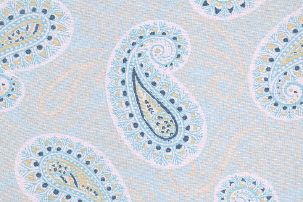 Premier Prints Peru Printed Cotton Drapery Fabric in Saffron/Coastal Blue. This printed fabric is perfect for window treatments, decorative pillows, handbags, light duty upholstery applications and almost any craft project. This fabric has a soft workable feel yet is stable and durable.
