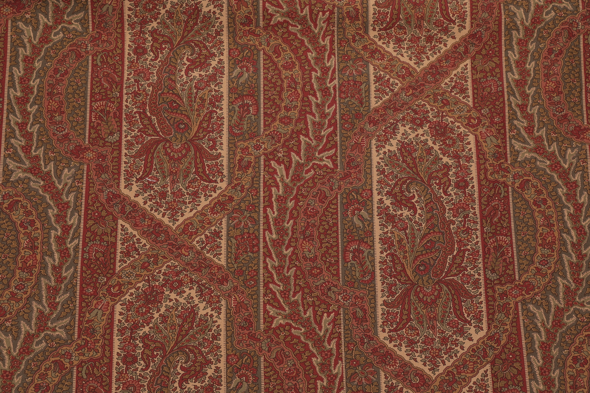 4.25 Yards Ralph Lauren Benson Paisley Printed Cotton Drapery Fabric in Garnet Details