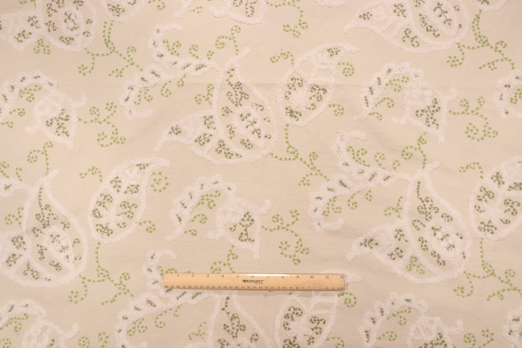 4.63 Yards Roth & Tompkins Paisley Lane Embroidered Drapery Fabric in Kiwi Details