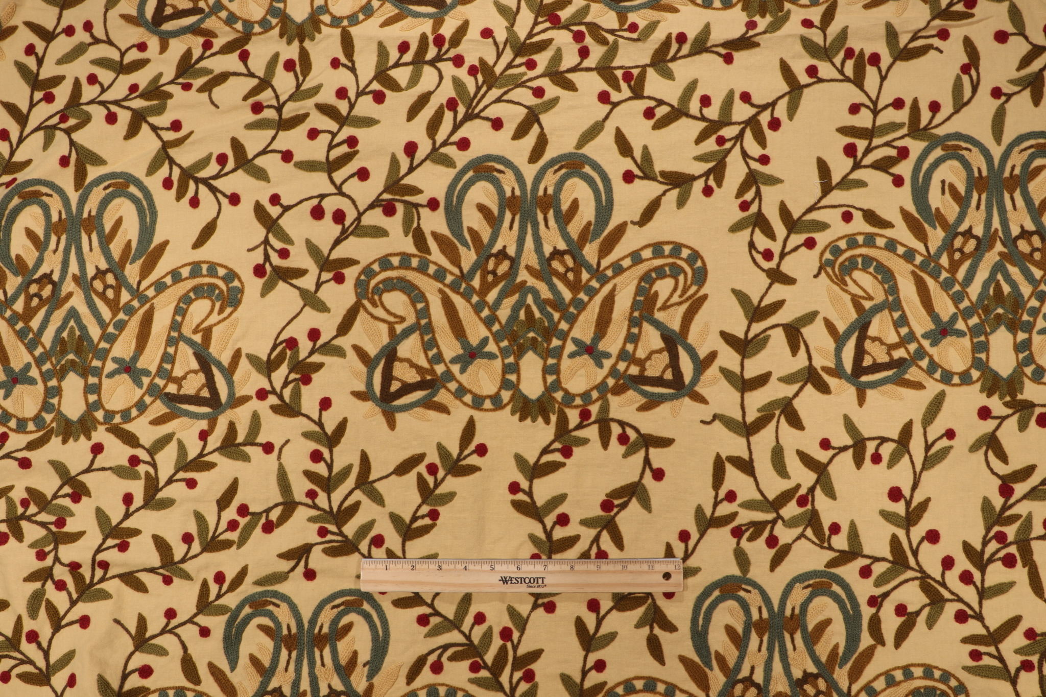 2.5 Yards Scalamandre Durjaya Crewel Embroidered Drapery Fabric in Venetian on Yellow Details