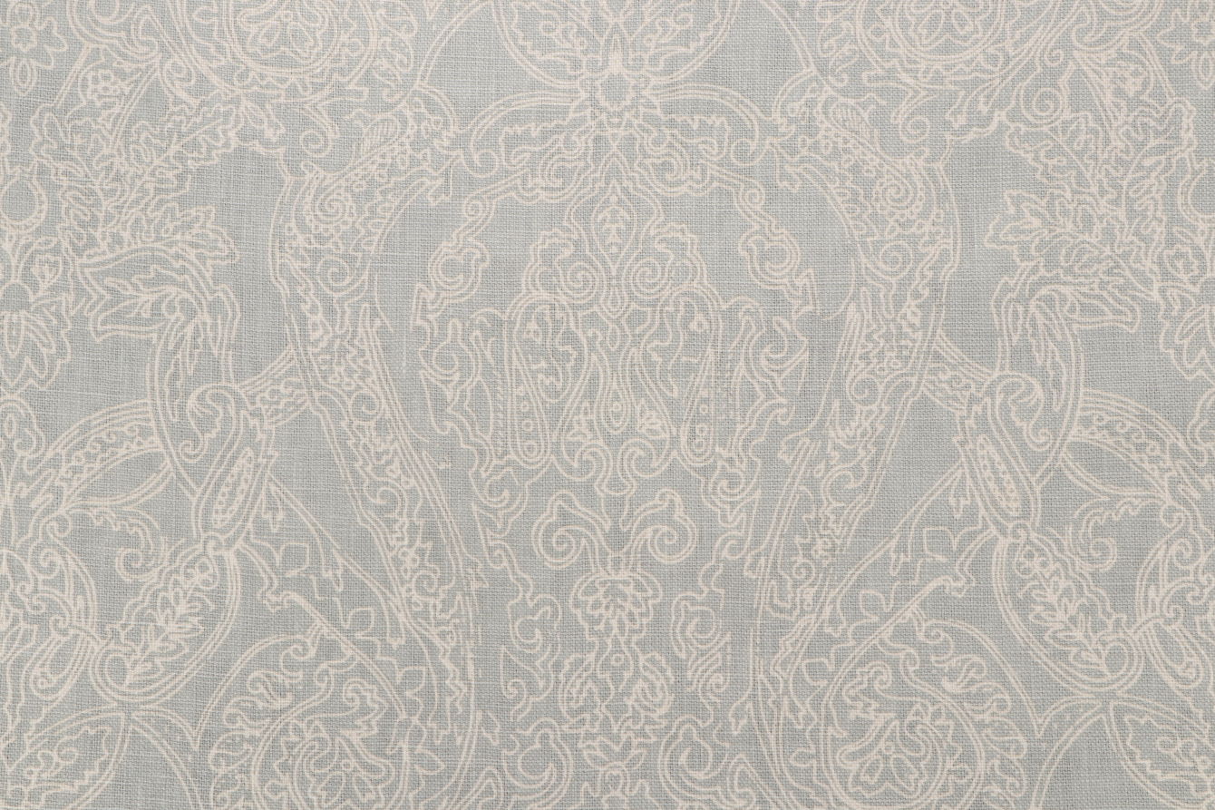 Stroheim Chattooga Paidley Printed Linen Drapery Fabric in Grey Details