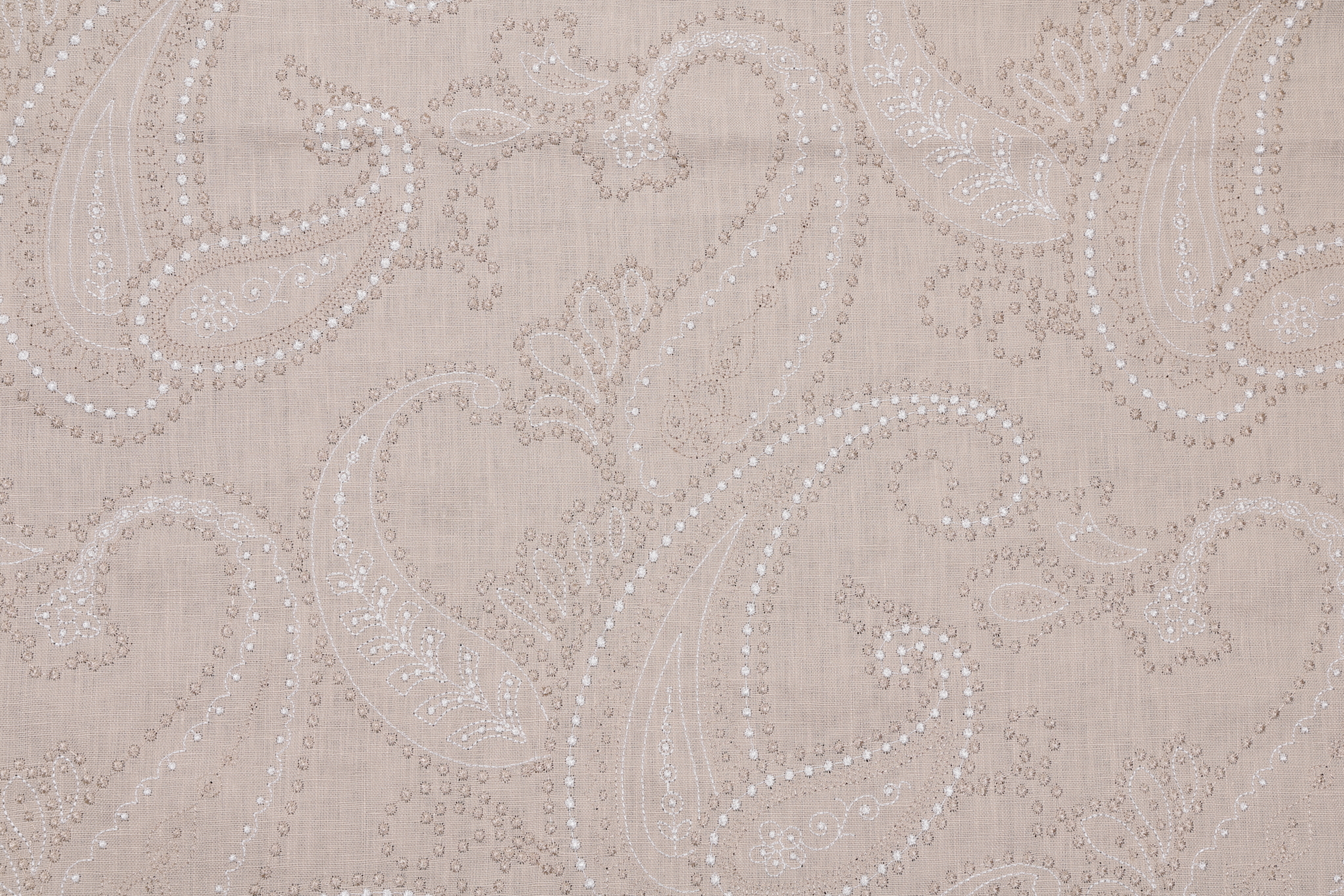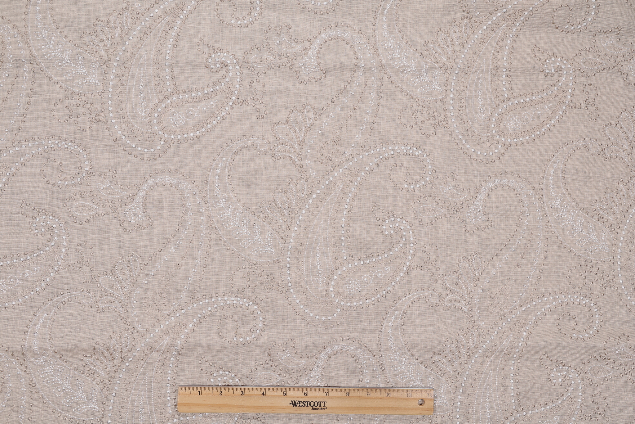 Vivian Embroidered Drapery Fabric in Natural is a remnant, which is sold as a whole piece.