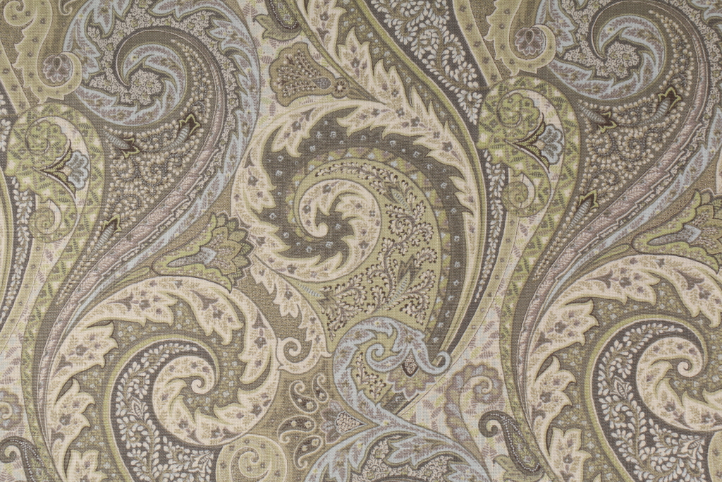6.75 Yards Waverly Jaipur Paisley Printed Linen Blend Drapery Fabric in Shade. This printed fabric is perfect for window treatments, decorative pillows, handbags, light duty upholstery applications and almost any craft project. This fabric has a soft workable feel yet is stable and durable.