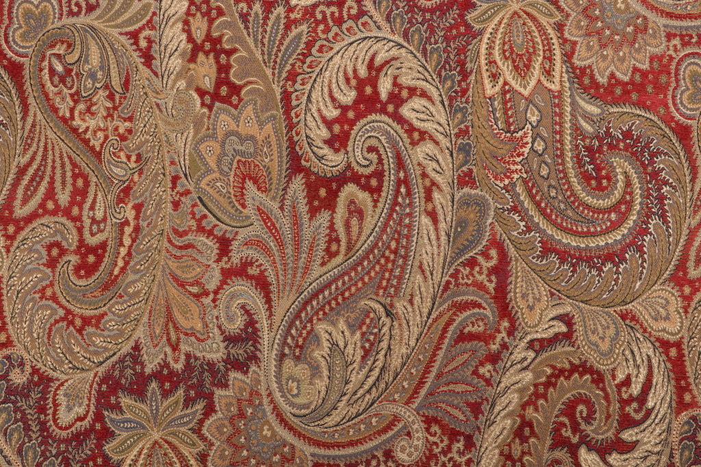 Paisley Chenille Tapestry Upholstery Fabric in Lacquer is a remnant. Fabric remnants refer to leftover pieces of fabric from production runs at manufacturing sites or pieces that remain from by the yard stock. The lengths of these remnants can vary from a few inches to several yards and are typically sold at a reduced price, since they represent remaining inventory.