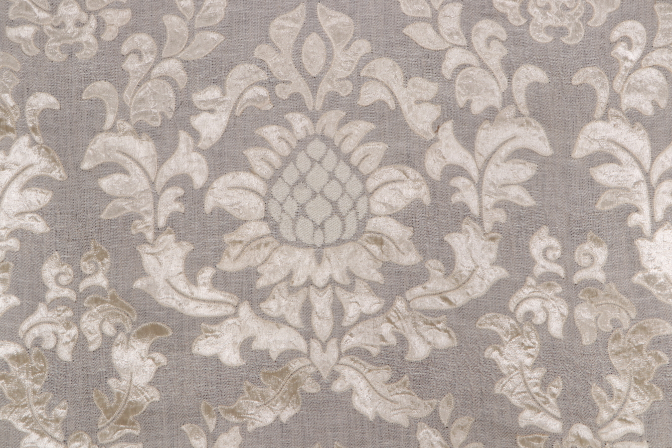 Available now: 13 yards of Montcada, a premium velvet embroidered decorator fabric by Scalamandre. With its soft, neutral tones of dark gray, silver, rosy brown, gray, and light gray, this fabric blends effortlessly into any space. This fabric can be used for a pair of tufted accent chairs, a settee, or dramatic Roman shades. It is also perfect for a luxurious upholstered bench or a custom bed canopy. Scalamandre is a heritage brand known for its opulent textiles, frequently featured in luxury estates, historic restorations, and high-end interior design projects. Note: If you are unsure about the suitability of this fabric for your specific use case please contact us prior to ordering.