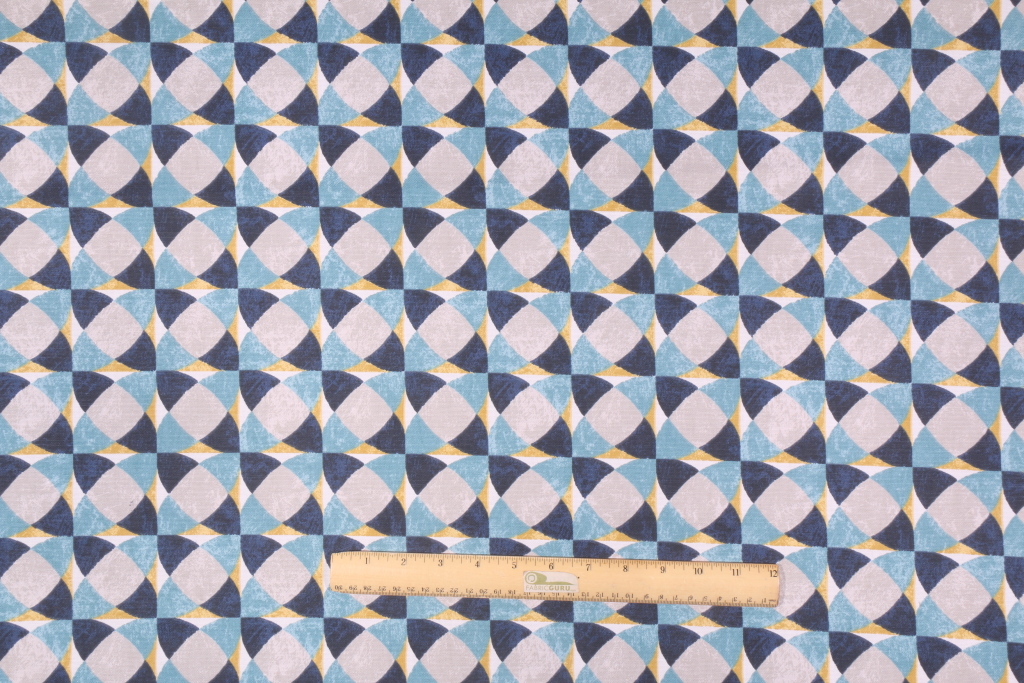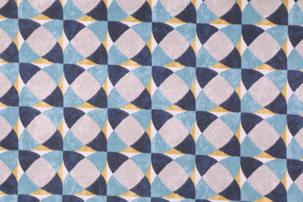 Robert Allen Echo Geo Printed Cotton Drapery Fabric in Peacock by DwellStudio is a remnant. Fabric remnants refer to leftover pieces of fabric from production runs at manufacturing sites or pieces that remain from by the yard stock. The lengths of these remnants can vary from a few inches to several yards and are typically sold at a reduced price, since they represent remaining inventory.