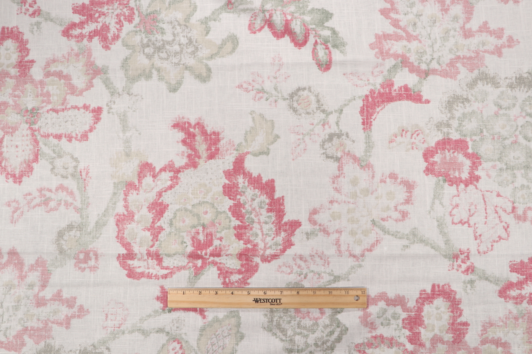 1.13 Yards Braemore Angelica Printed Linen Drapery Fabric in Petal Details