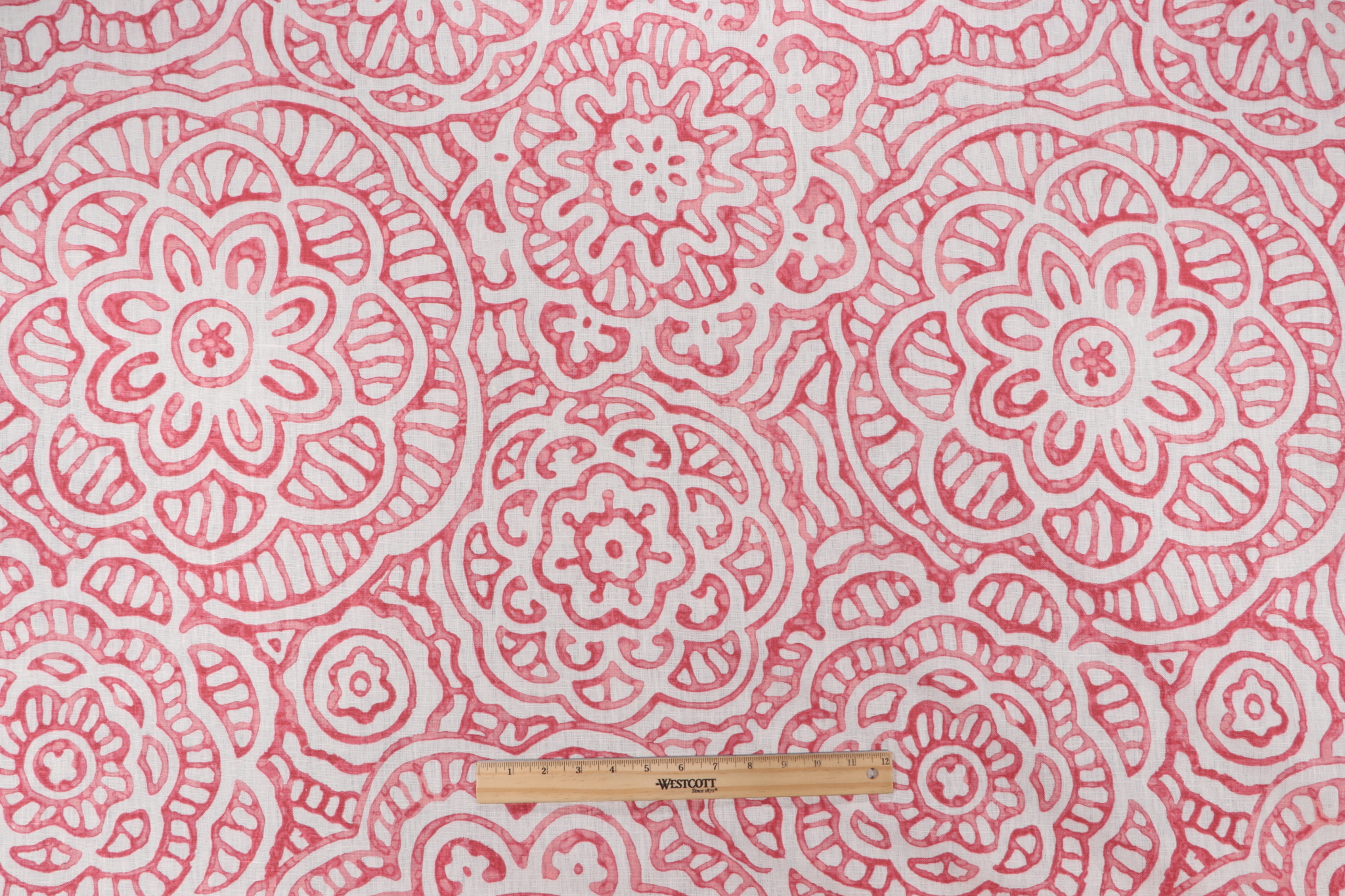 Fonthill Alan Printed Linen Drapery Fabric in Coral for Scalamandre is a remnant, which is sold as a whole piece.