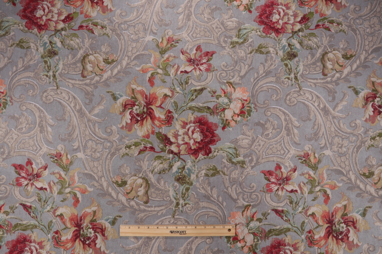8.88 Yards Waverly Fresco Flourish Printed Cotton Drapery Fabric in Jewel Details