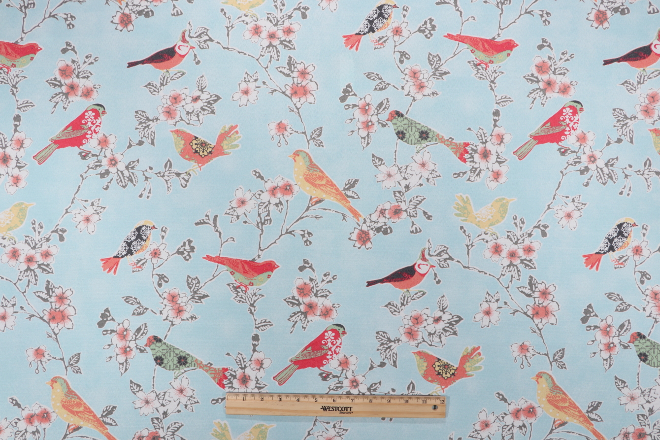 PK Lifestyles Tweet Toile Printed Polyester Outdoor Fabric in Robin's Egg Details