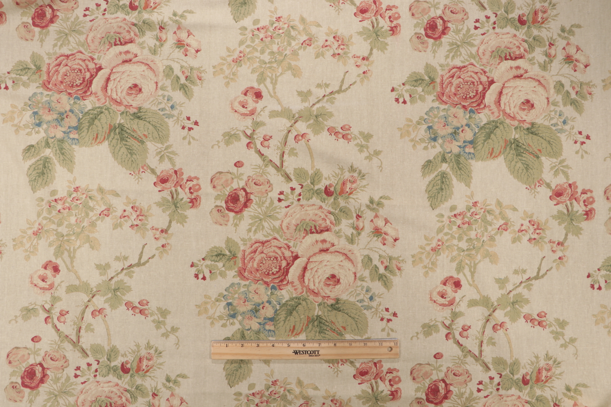 3 Yards Old World Weavers Revelino Printed Linen Blend Drapery Fabric in Chintz Details