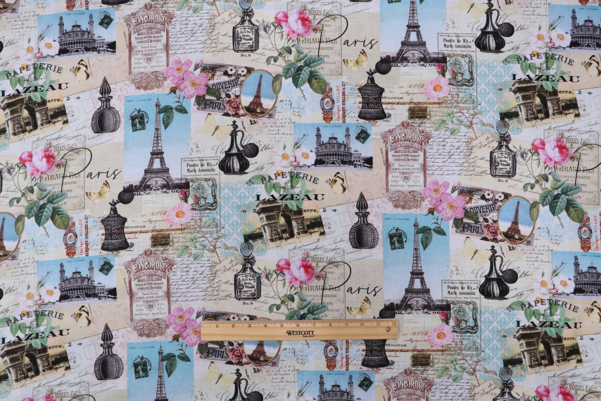 Please allow 2-3 business days for your Timeless Treasures Belle Fleur - Paris Collage Printed Cotton Craft Fabric in Multi sample to ship via USPS Priority mail.