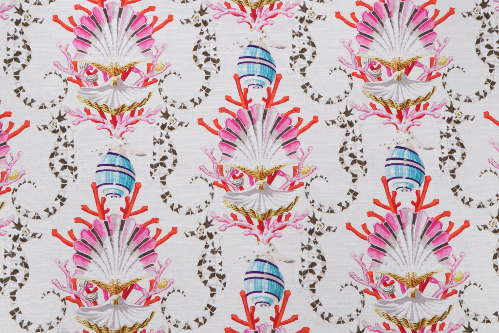 Harrison Howard Mariner's Song Printed Cotton Drapery Fabric in Aquarium is a remnant, which is sold as a whole piece.