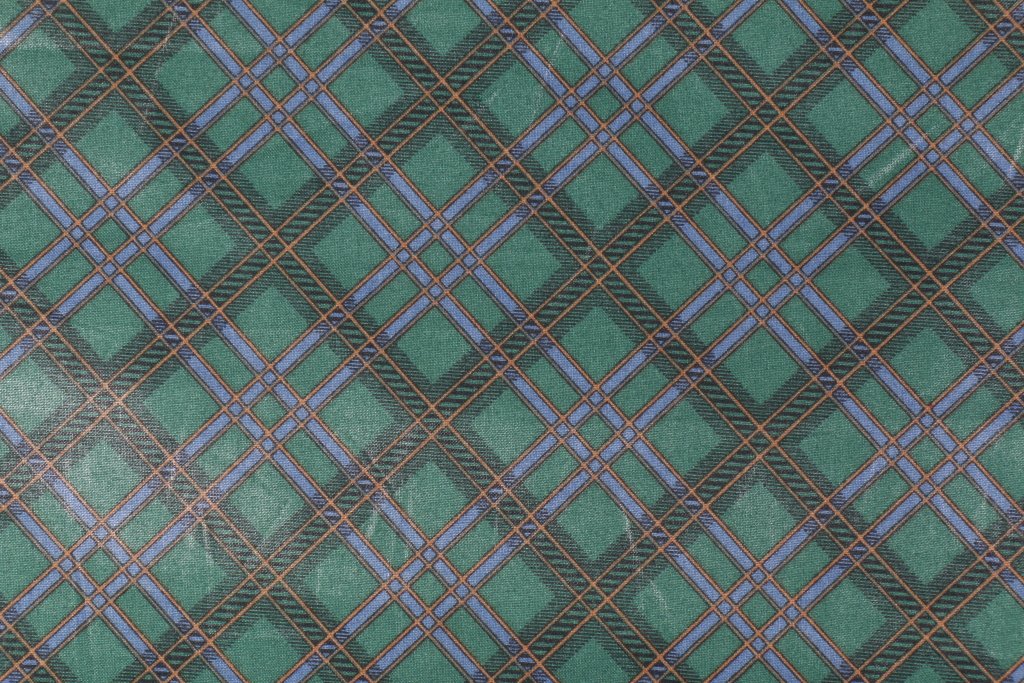 Plaid Printed Polished Cotton Drapery Fabric in Green is a remnant, which is sold as a whole piece.