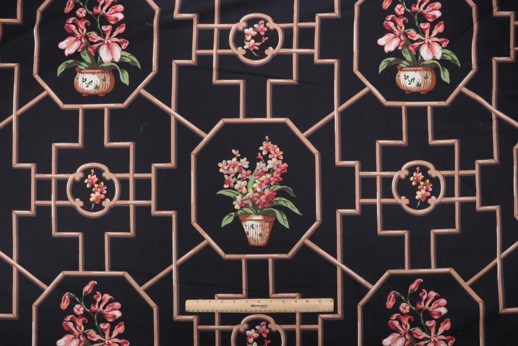 10.13 Yards Thibaut Orchid F93126 Printed Cotton Drapery Fabric in Black Details