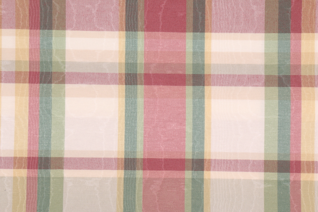RA Oxville Moire Plaid Upholstery Fabric in Parfait is a remnant. Fabric remnants refer to leftover pieces of fabric from production runs at manufacturing sites or pieces that remain from by the yard stock. The lengths of these remnants can vary from a few inches to several yards and are typically sold at a reduced price, since they represent remaining inventory.