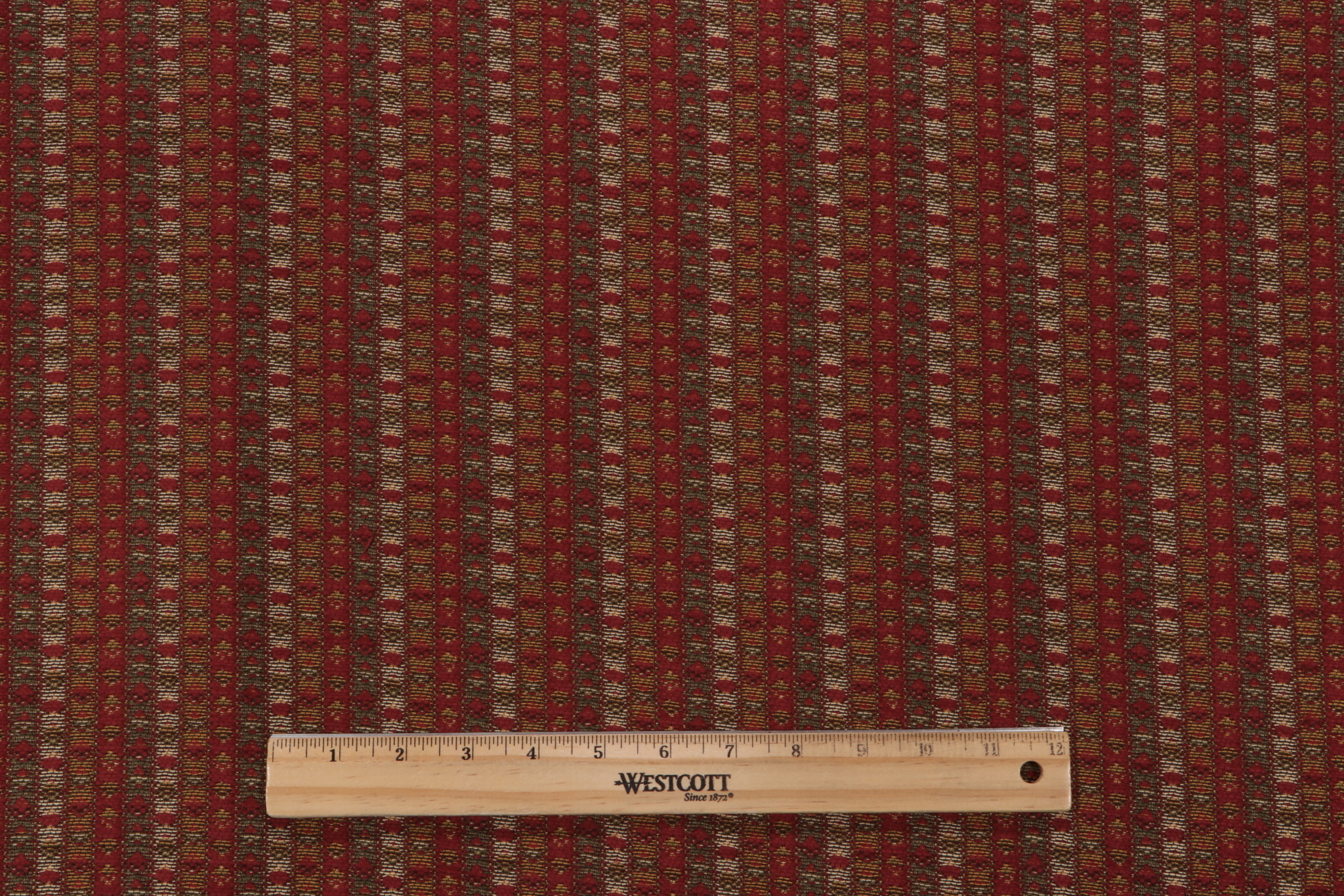Scalamandre Kingston Stripe Woven Chenille Upholstery Fabric in Brick/Beige/Green Details