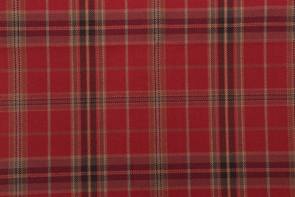 Woven Tartan Plaid Decorator Fabric in Red is a remnant, which is sold as a whole piece.