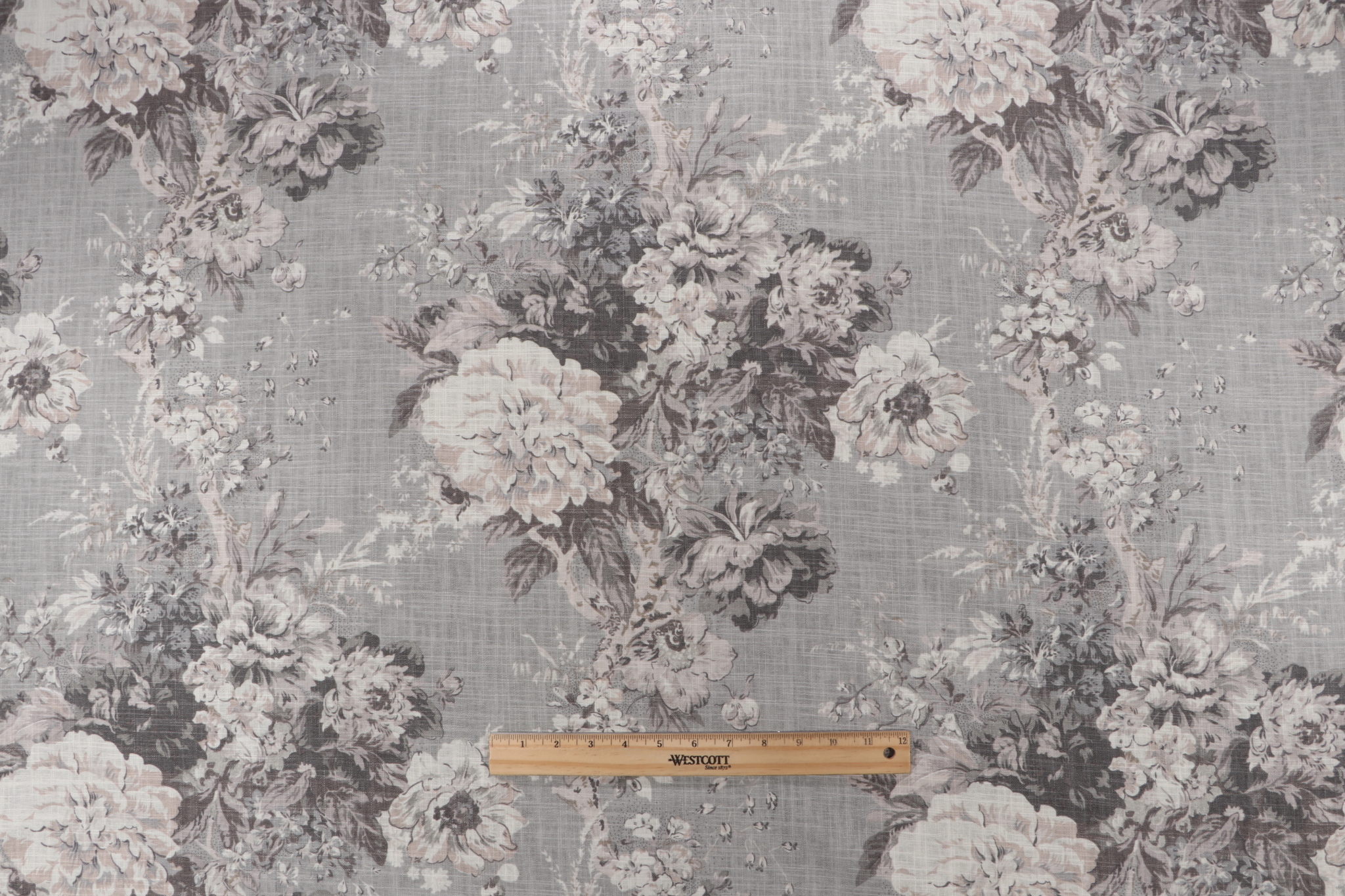 Waverly Ballad Bouquet Printed Linen Blend Drapery Fabric in Platinum is a remnant. Fabric remnants refer to leftover pieces of fabric from production runs at manufacturing sites or pieces that remain from by the yard stock. The lengths of these remnants can vary from a few inches to several yards and are typically sold at a reduced price, since they represent remaining inventory.