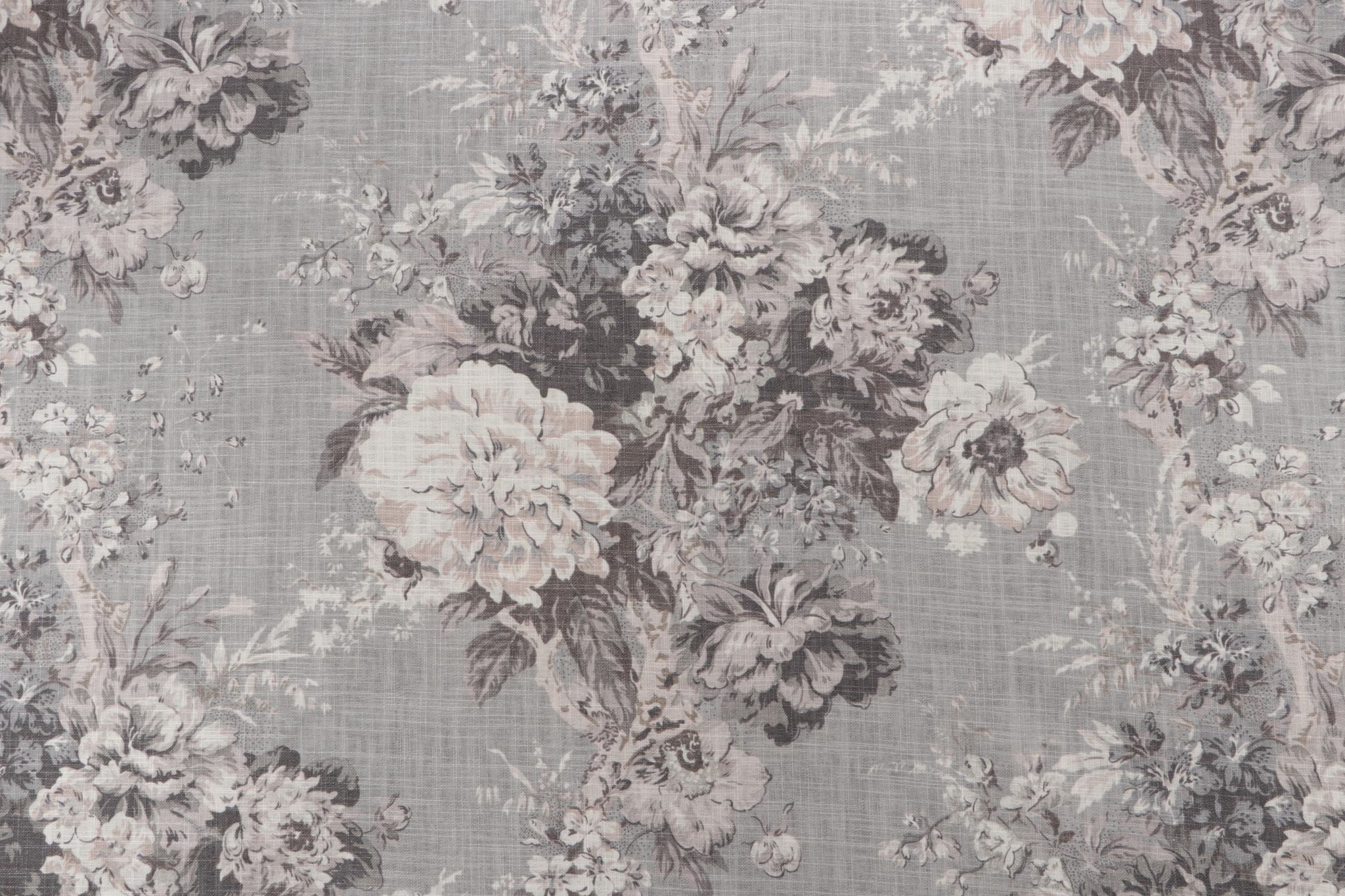 14 Yards Waverly Ballad Bouquet Printed Linen Blend Drapery Fabric in Platinum Details