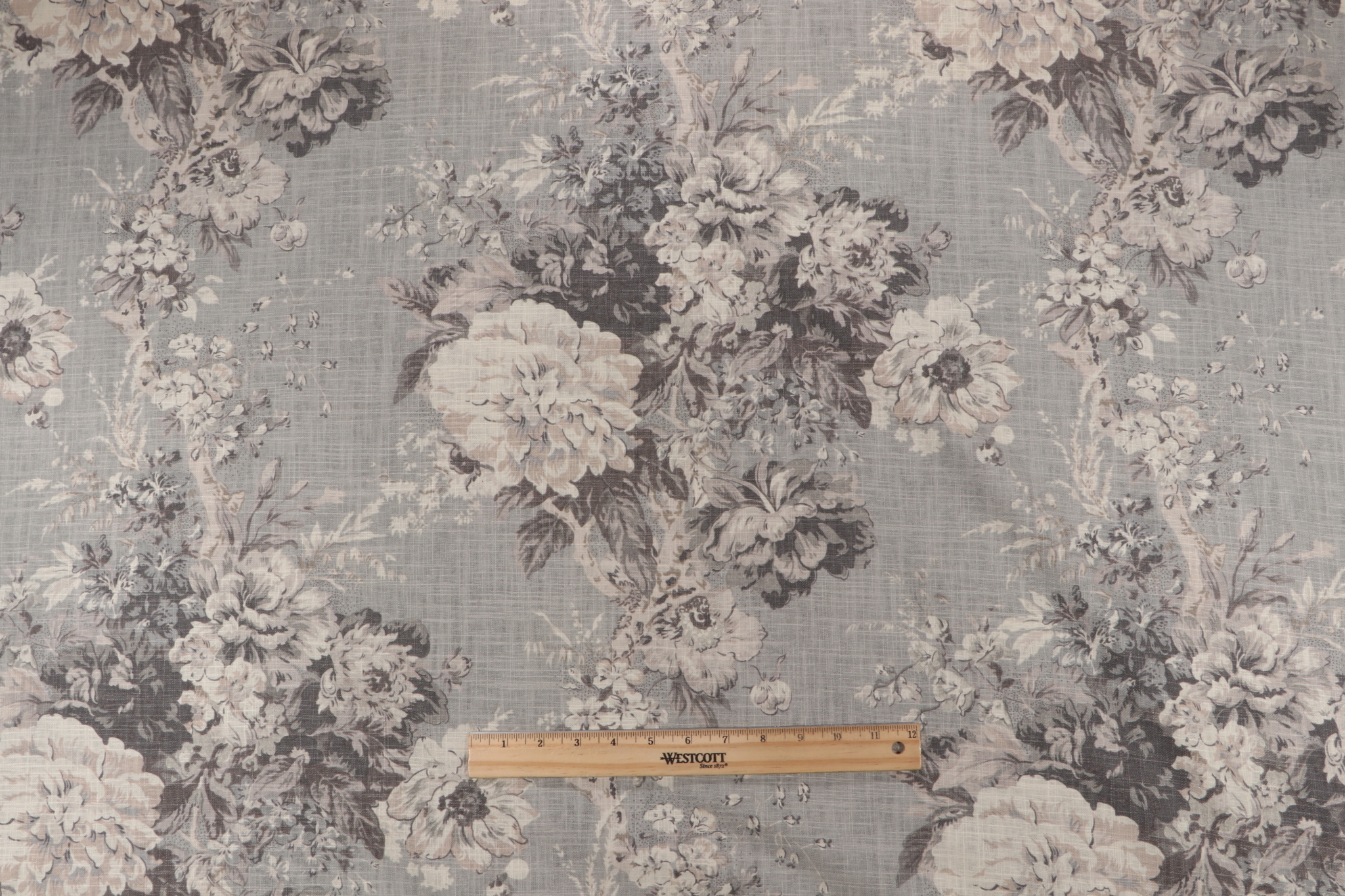 6.38 Yards Waverly Ballad Bouquet Printed Linen Blend Drapery Fabric in Platinum Details