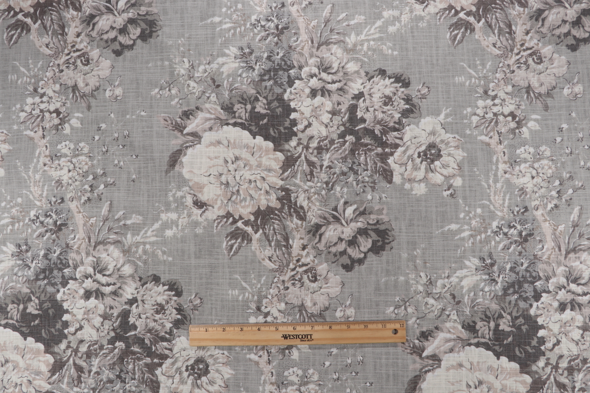 12 Yards Waverly Ballad Bouquet Printed Linen Blend Drapery Fabric in Platinum Details