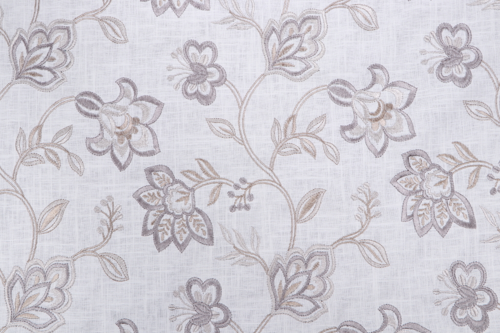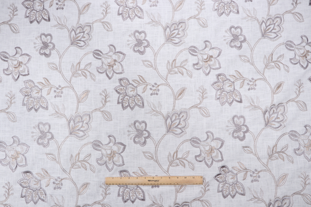 5.25 Yards Yani Embroidered Drapery Fabric in Platinum Details