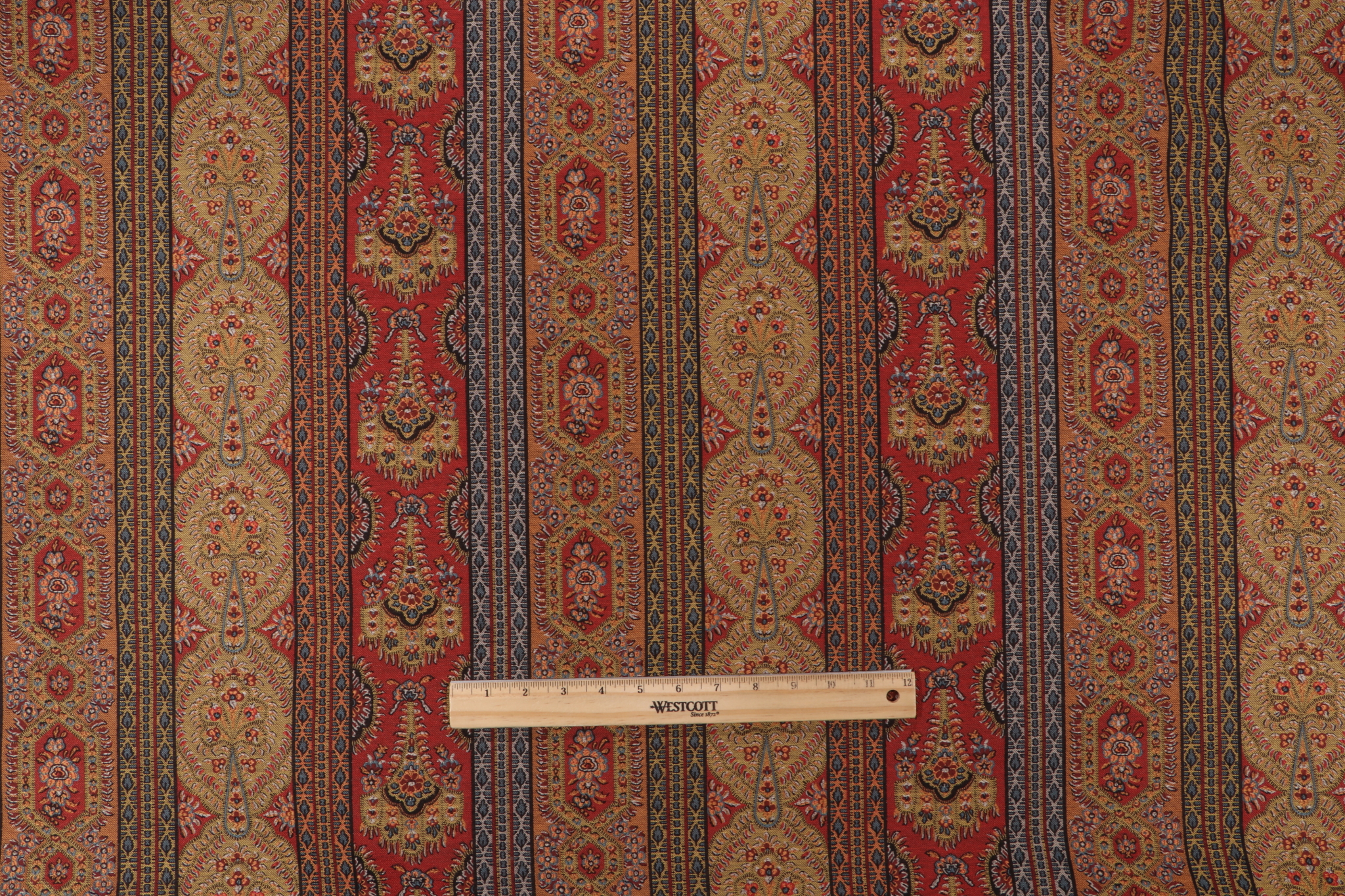 If you order a sample of P Kaufmann Sagar Tapestry Upholstery Fabric in Pompeii the size of the swatch you receive will be approximately 4" x 6". This is enough fabric to verify color and texture, but may not be large enough to capture an entire pattern.