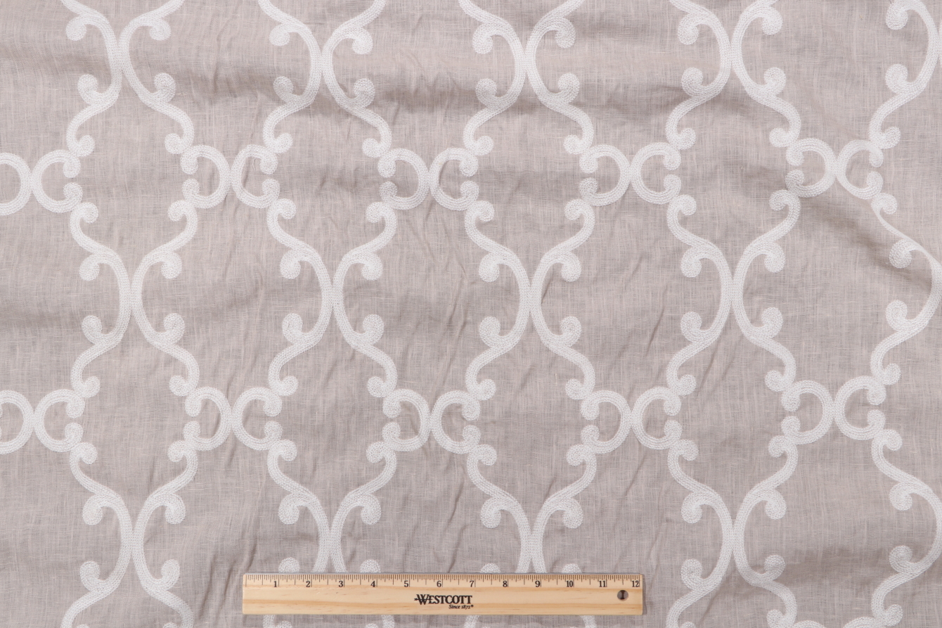 Now featuring 10 yards of Anna French Roselli Trellis, a luxurious embroidered linen decorator fabric from Thibaut. This fabric can be used for elegant drapery, accent upholstery such as settees or headboards, or multiple coordinated home décor elements. Note: If you are unsure about the suitability of this fabric for your specific use case please contact us prior to ordering.