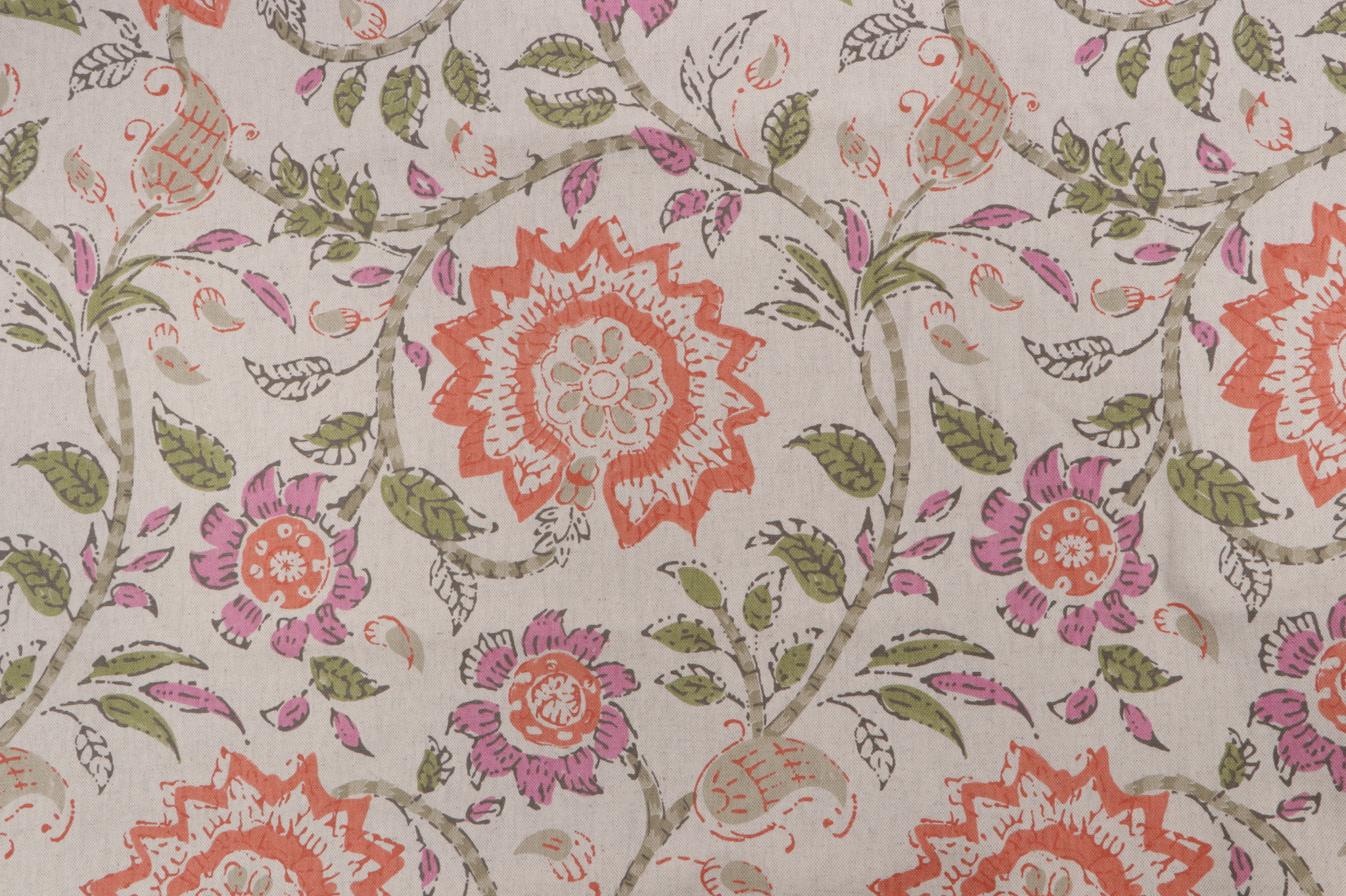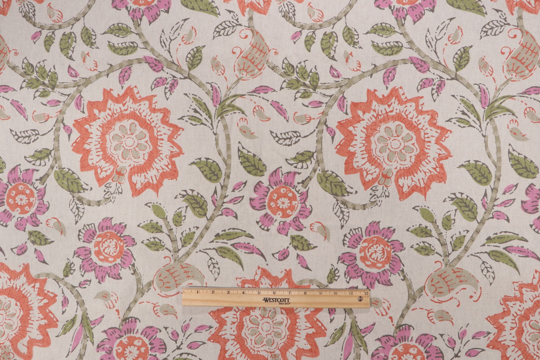 4.25 Yards Thibaut Sevita F964113 Printed Linen Blend Drapery Fabric in Fuchsia and Coral Details