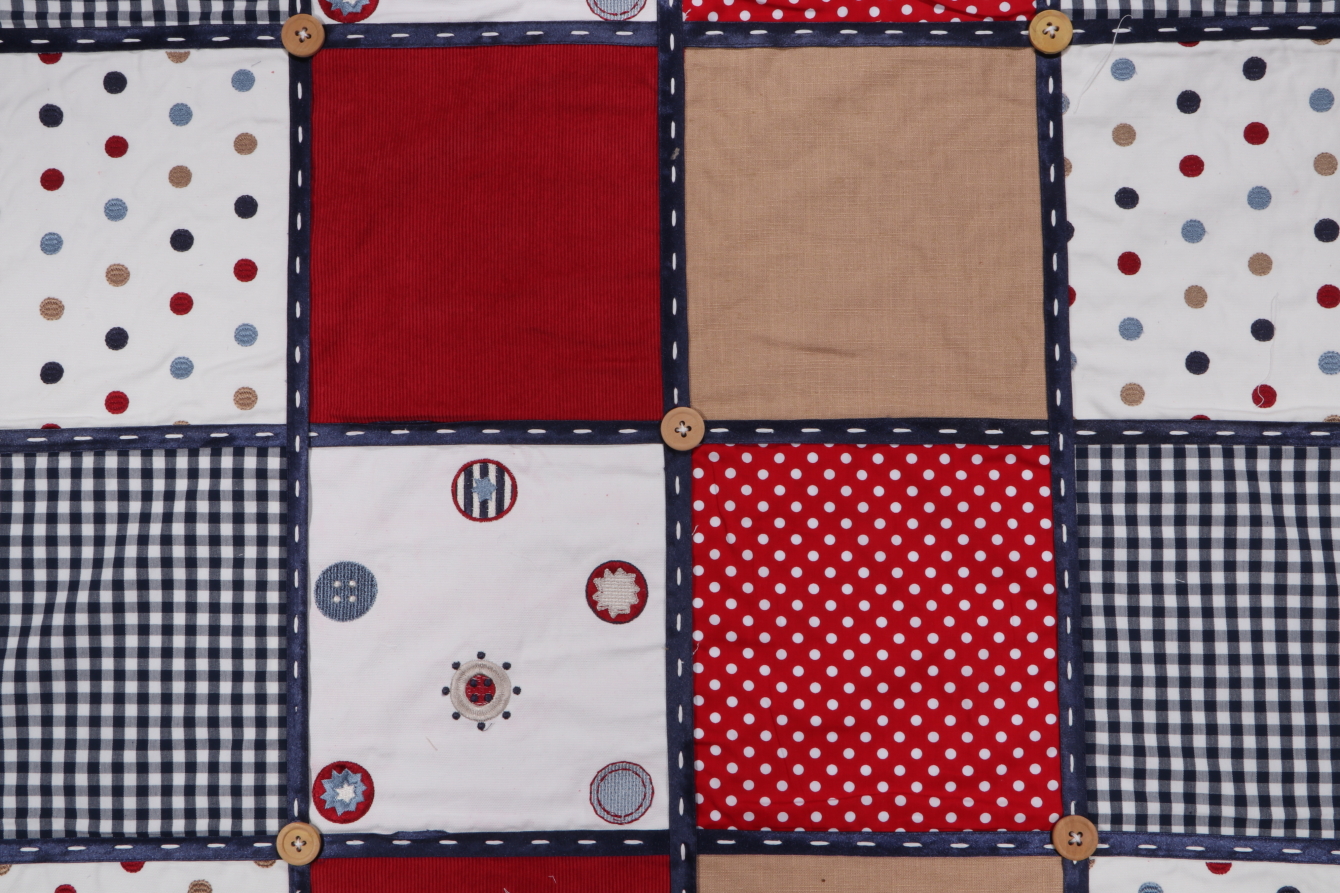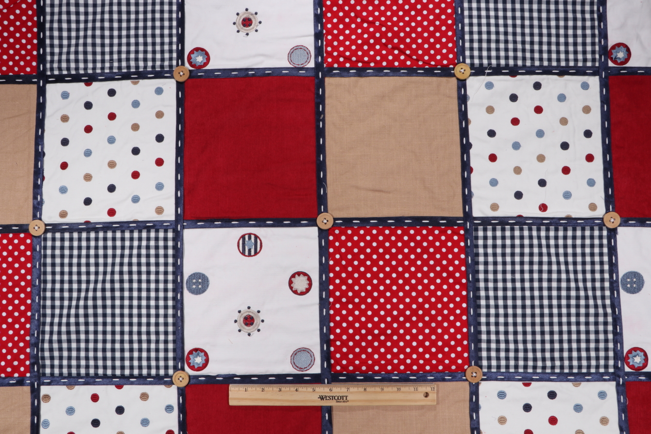 - Additional Notes: This patchwork fabric contains wooden buttons.