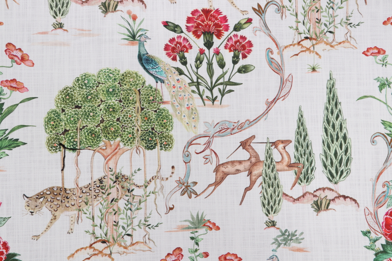 Hamilton Tolkein Printed Cotton Drapery Fabric in Cream Details